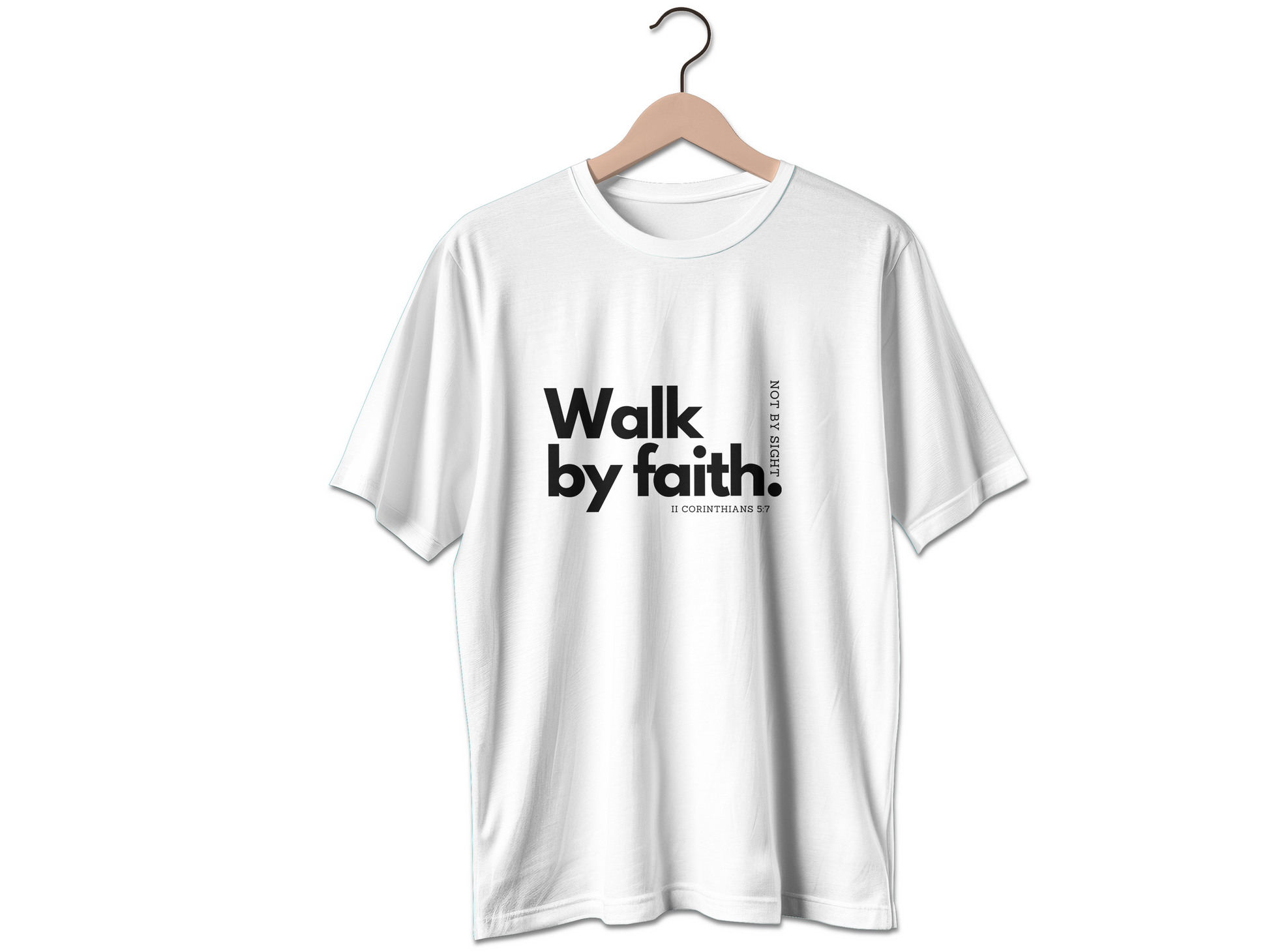 This WALK BY FAITH TEE is crafted from 100% preshrunk ringspun cotton for lasting comfort and durability. Featuring a bold "Walk by faith, not by sight!" declaration, it makes a powerful statement with no questions and no hesitation. Wear your faith confidently every day.