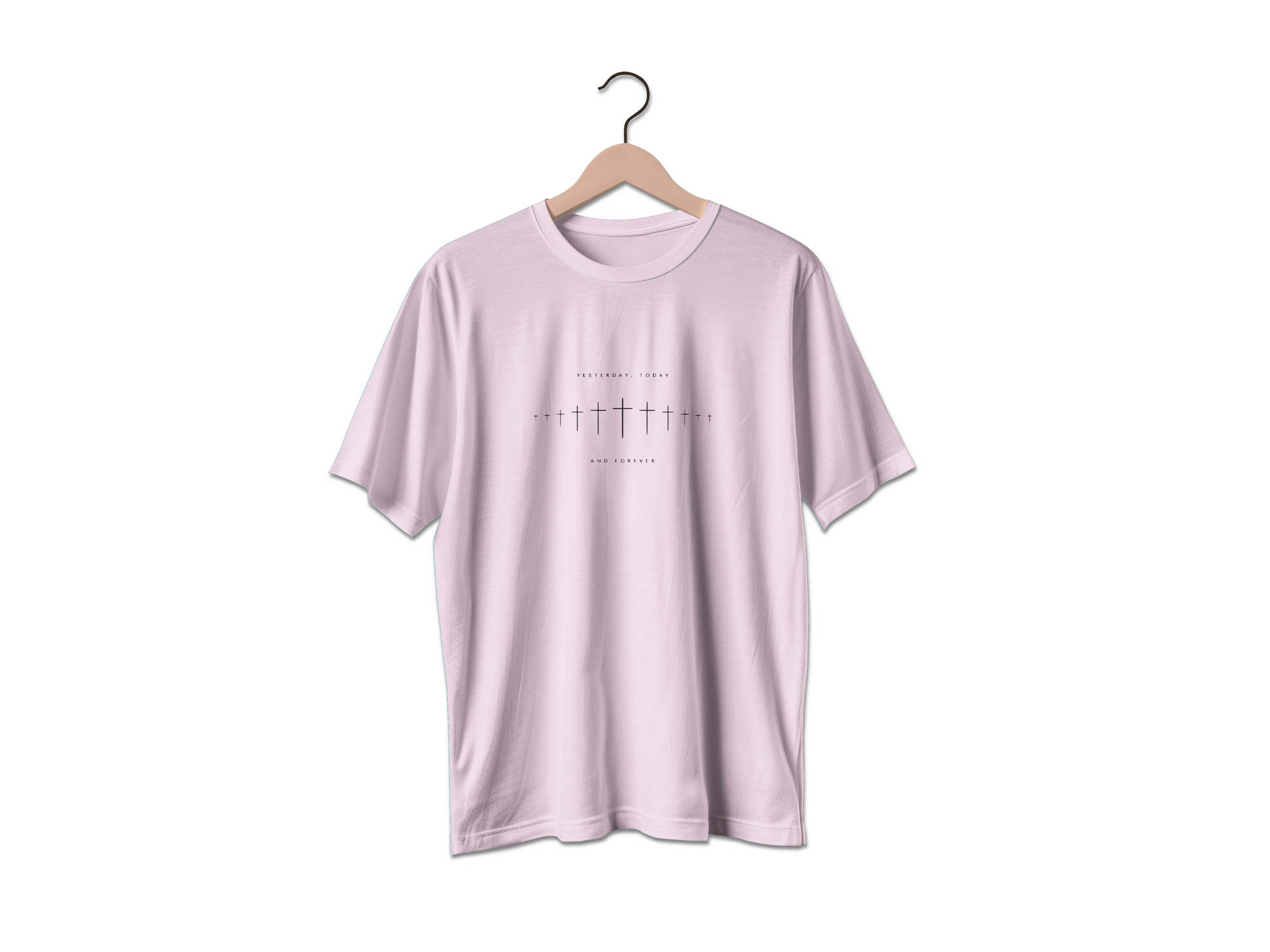 YESTERDAY, TODAY, FOREVER Crafted from premium 4.5 oz./yd² ring-spun cotton, this tee celebrates the unchanging nature of God's faithfulness across every season of life. The bold messaging—yesterday, today, forever—serves as a daily reminder that divine grace remains constant through past struggles, present challenges, and future hopes. Soft, durable, and designed for everyday wear, this piece bridges faith and fashion with understated confidence. Perfect for those seeking apparel that reflects their spiritual convictions without compromise.